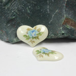 Japanese Glass Porcelain Decal Painting - Rose Heart 12x11MM BLUE ON CHALKWHITE