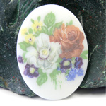 German Glass Porcelain Decal Painting - Flowers Oval 25x18MM CHALKWHITE BASE