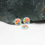 Japanese Glass Porcelain Decal Painting - Flowers Oval 10x8MM MULTI (Style A) ON CHALKWHITE
