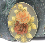 Glass Porcelain Decal Painting - 2 Roses (2094) Oval 40x30MM MATTE CRYSTAL MIRROR BASE