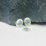 German Glass Porcelain Decal Painting - Flowers Oval 18x13MM CHALKWHITE BASE