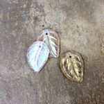 Czech Pressed Glass Engraved Pendant - Leaf 14x9MM OLIVINE AB