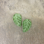 Czech Pressed Glass Engraved Pendant - Leaf 14x9MM PERIDOT