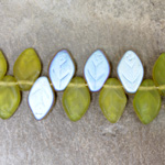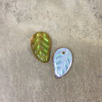 Czech Pressed Glass Engraved Pendant - Leaf 12x7MM OLIVINE AB