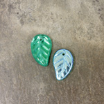 Czech Pressed Glass Engraved Pendant - Leaf 14x9MM MATTE EMERALD AB