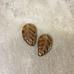 Czech Pressed Glass Engraved Pendant - Leaf 14x9MM SMOKE TOPAZ