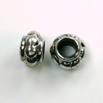 Metalized Plastic Engraved Bead -Spacer 12x8MM ANT SILVER