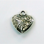 Metalized Plastic Pendant- Engraved Heart 18MM ANT SILVER