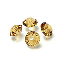 The machine cut crystal spacer bead from premium Czech makers is beautifully faceted rondelle shape that features a point like a bicone on each side of the bead.