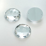 Plastic Flat Back 2-Hole Foiled Sew-On Stone - Round 25MM CRYSTAL