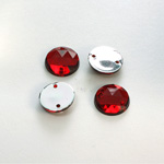 Plastic Flat Back 2-Hole Foiled Sew-On Stone - Round 15MM RUBY
