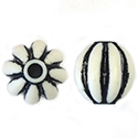 Plastic Casino Style Bead - Clubs 12MM BLACK on WHITE
