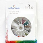 Bling Nail Kits from Egyptian brand Asfour Crystal are machine cut flat back crystal rhinestone nail embellishments in retail ready packages. Each Bling Nail package contains 600 identically sized stones in an assortment of 12 colors (50 pieces per color). Choose kits in SS06, SS08 and SS10 stone sizes. Each stone has a silver foiled back that adheres to nails easily with a transparent top coat.