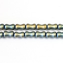 Glass Pressed Bead - Fancy Curved Tube 08x4MM MATTE IRIS BLUE