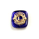 Glass Flat Back Intaglio Lions Club Cushion Antique 16x14MM GOLD ON SAPPHIRE Foiled