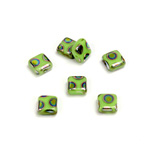Czech Pressed Glass Bead - Smooth Flat Square 10x10MM PATTERN on GREEN