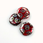 Czech Pressed Glass Bead - Smooth Flat Coin 19MM PEACOCK RUBY