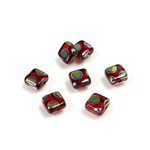Czech Pressed Glass Bead - Smooth Flat Square 06x6MM PEACOCK RUBY