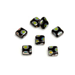 Czech Pressed Glass Bead - Smooth Flat Square 06x6MM PEACOCK MATTE CRYSTAL