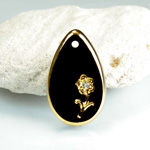 Glass Engraved Intaglio Flower Pendant with Chaton Insert - Pear 21x13MM JET with GOLD