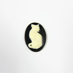 Plastic Cameo - Cat Sitting Oval 25x18MM IVORY ON BLACK