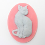 Plastic Cameo - Cat Sitting Oval 25x18MM GREY ON PINK