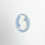 Plastic Cameo - Cat Sitting Oval 18x13MM WHITE ON WEDGEWOOD BLUE