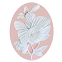 Plastic Cameo - Butterfly Oval 40x30MM WHITE ON ANGELSKIN