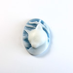 Plastic Cameo - Cat Sitting Oval 25x18MM WHITE ON BLUE