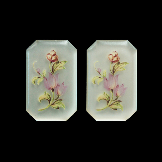 German Plastic Porcelain Decal Painting - Flowers Pink (2428) Cushion Octagon 38/24MM MATTE CRYSTAL