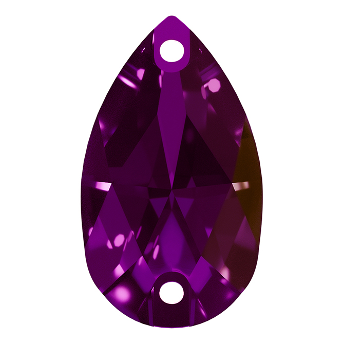 Aurora Crystal Flat Back 2-Hole Sew-on Foiled Stone - Pearshape 12x7MM AMETHYST #6021