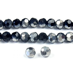 Chinese Cut Crystal Bead 32 Facet - Round 04MM JET with HALF SILVER