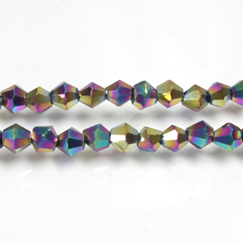 Chinese Cut Crystal Bead - Bicone 04x4MM RAINBOW METALLIC