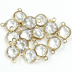 Made in the USA using top quality Crystal channel stones. Each machine cut crystal stone is bezel set in a lustrous raw brass rim ready for plating in your favorite finish, or to use as is. With no prongs, and their double flat surfaces, the bezel allows the light to play through from both sides. Elegant and versatile with 2 loops for linking onto your designs, these are easy additions to earrings, charm bracelets and more.