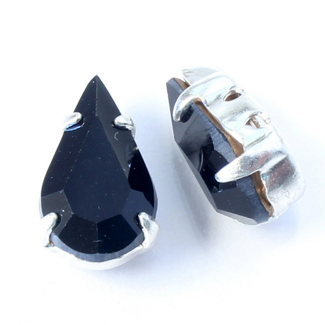 Crystal Stone in Metal Sew-On Setting - Pear 13x7.8MM JET-SILVER