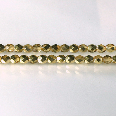 Czech Glass Fire Polish Bead - Round 04MM 1/2 Coated CRYSTAL/GOLD