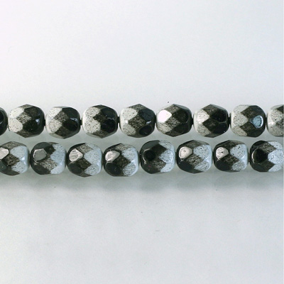 Czech Glass Fire Polish Bead - Round 06MM BLACK-WHITE 89094