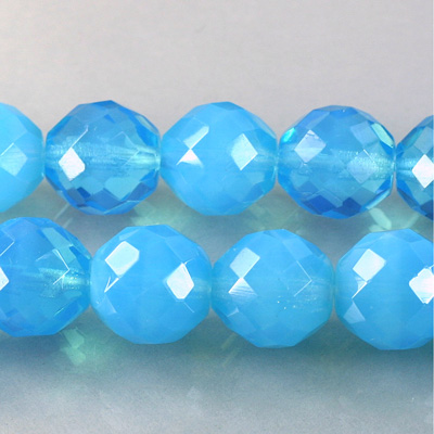 Czech Glass Fire Polish Bead - Round 14MM OPAL AQUA