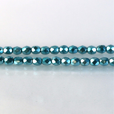 Czech Glass Pearl Faceted Fire Polish Bead - Round 04MM AQUA ON BLACK 72166