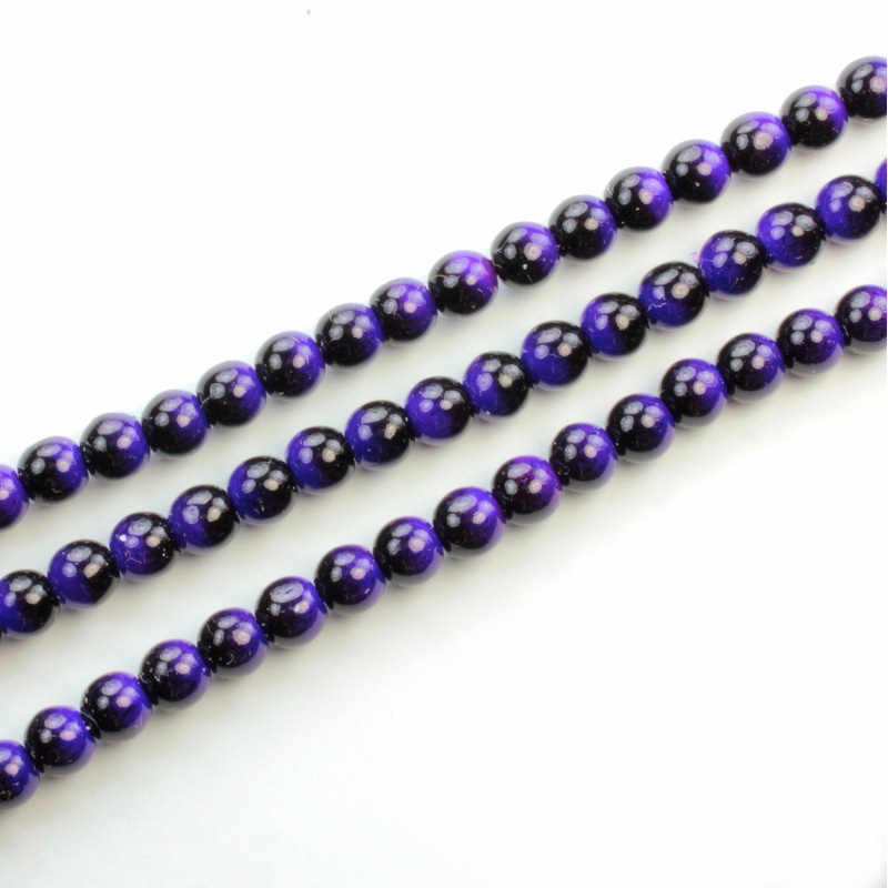 Czech Pressed Glass Bead - Smooth 2-Color Round 04MM COATED BLACK-DEEP BLUE