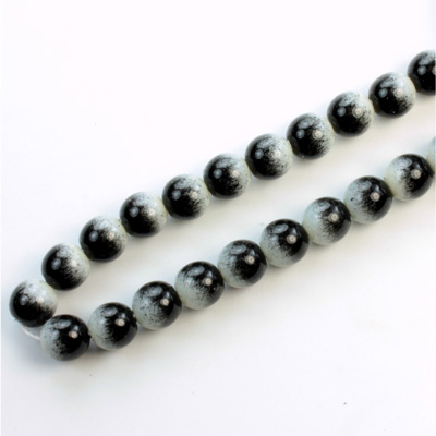 Czech Pressed Glass Bead - Smooth 2-Color Round 06MM COATED BLACK-WHITE