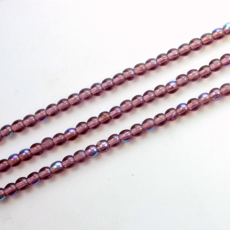 Czech Pressed Glass Bead - Smooth Round 03MM AMETHYST AB