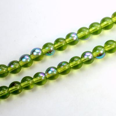 Czech Pressed Glass Bead - Smooth Round 06MM OLIVINE AB