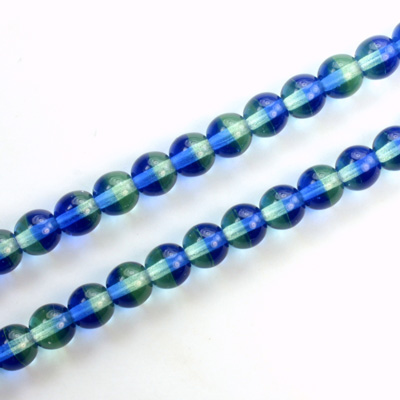 Czech Pressed Glass Bead - Smooth Round 06MM SAPPHIRE-EMERALD