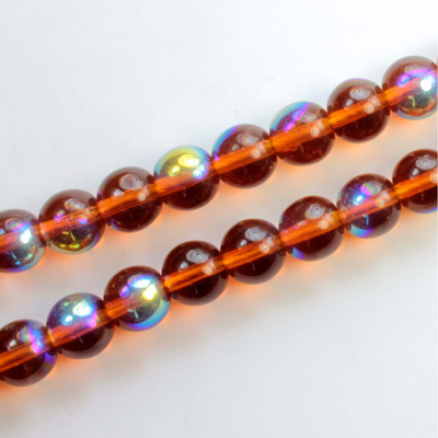 Czech Pressed Glass Bead - Smooth Round 08MM MADEIRA TOPAZ AB