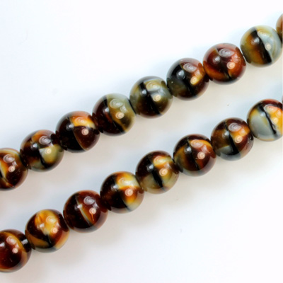 Czech Pressed Glass Bead - Smooth Round 08MM TIGEREYE