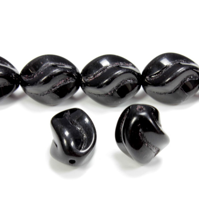 Czech Pressed Glass Bead - Smooth Twisted Oval 18x13MM JET