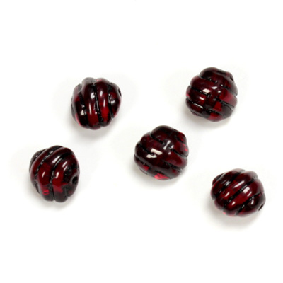 Czech Pressed Glass Engraved Bead - 09x8MM BLACK ON RUBY