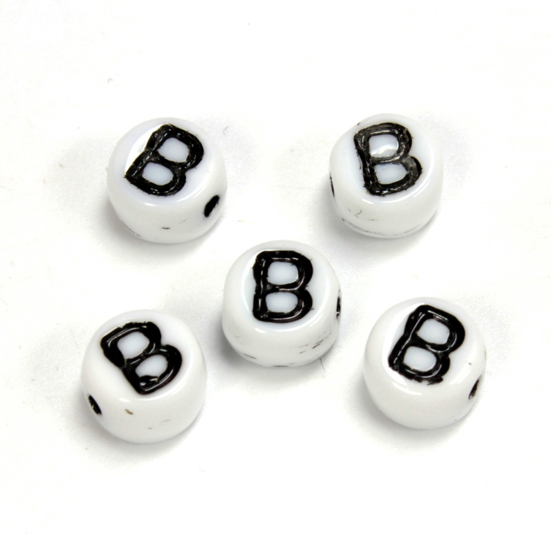 Czech Pressed Glass Engraved Bead - Alphabet 6MM BLACK ON WHITE