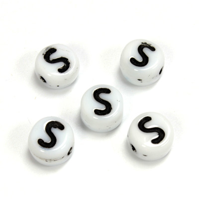 Czech Pressed Glass Engraved Bead - Alphabet 6MM BLACK ON WHITE